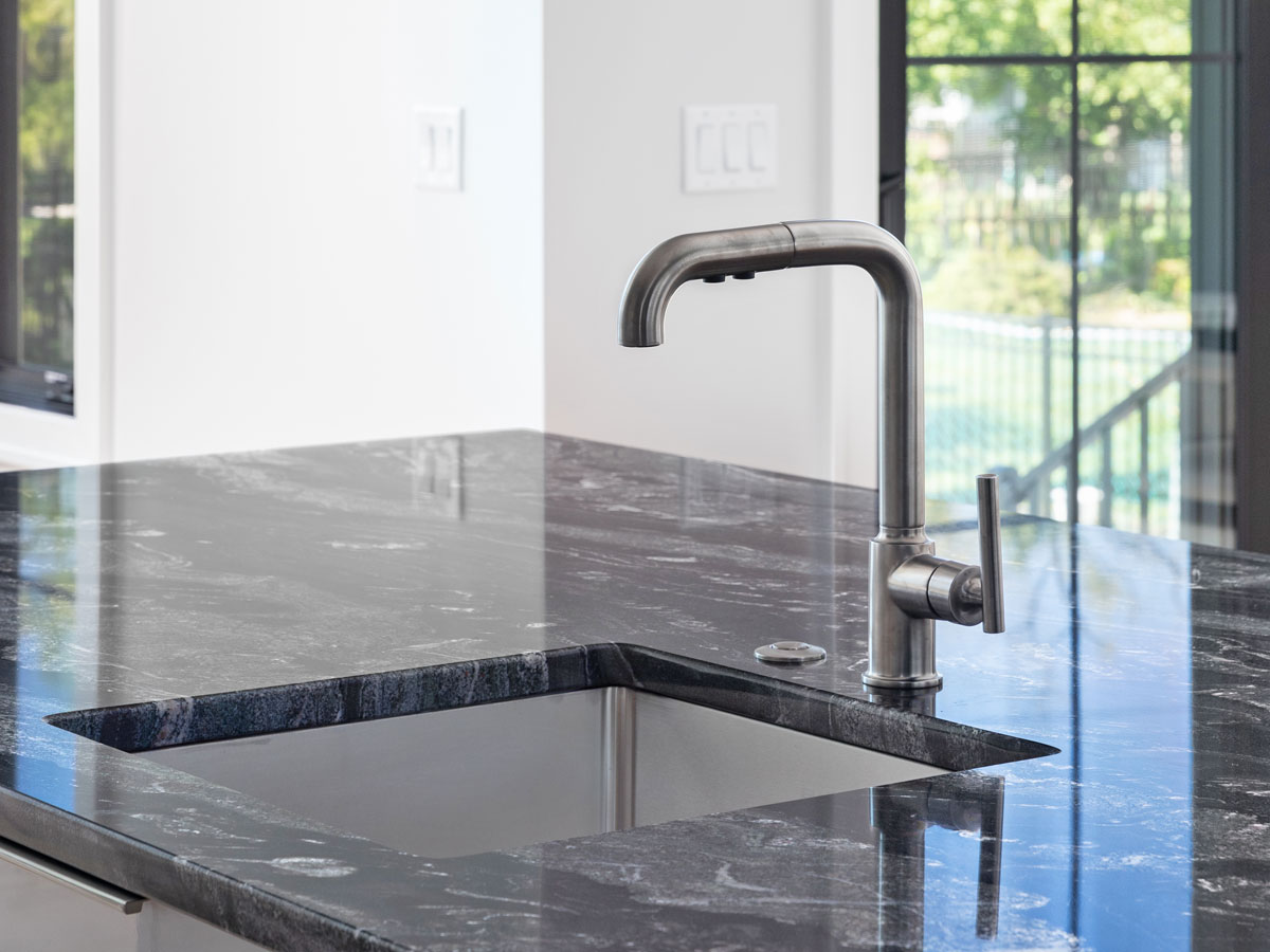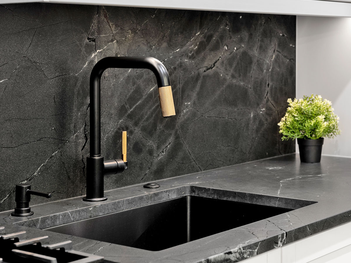 Mit einer Tischplatte aus Granit oder einem anderen harten Naturstein können Sie die perfekte Kombination aus der Einzigartigkeit der Natur und außergewöhnlicher Funktionalität genießen.