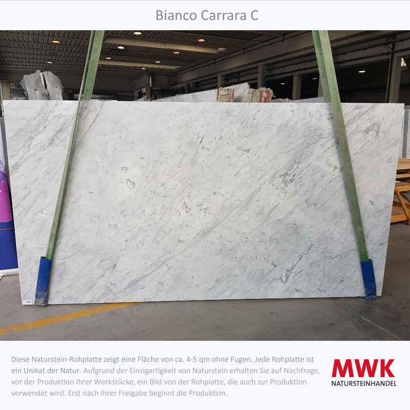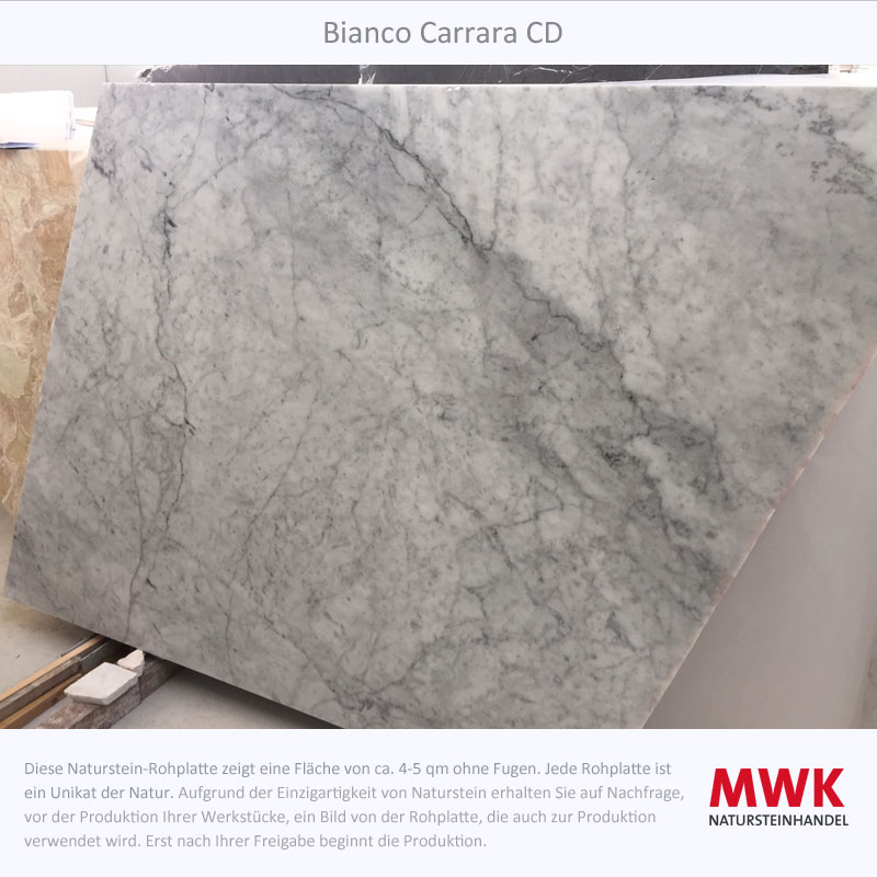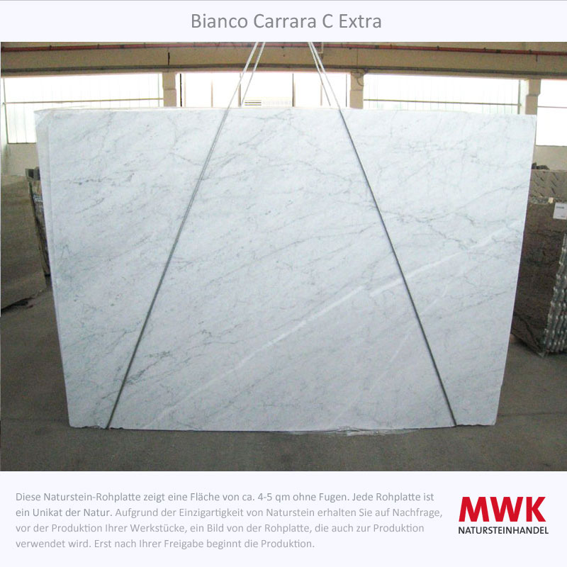 Bianco Carrara stammt aus den Apuanischen Alpen in der Toskana, Italien und er ist Teil der großen Carrara-Marmor Familie . Die Stadt Carrara ist seit der Römerzeit für ihren Marmorabbau bekannt und hat dem Stein seinen Namen gegeben. Der Name Carrara leitet sich aus dem keltischen ab und heißt übersetzt „Steinbruch“. Es gibt verschiedene Qualitätsstufen von Bianco Carrara, die sich in der Farbe und Aderung unterscheiden. Bianco Carrara C hat einen relativ weißen Hintergrund mit grauer Aderung, während Bianco Carrara CD eher gräulich ist und eine dunklere Aderung aufweist. Oder die beiden beliebten weißen Sorten Bianco Carrara Extra und Bianco Carrara Gioia.